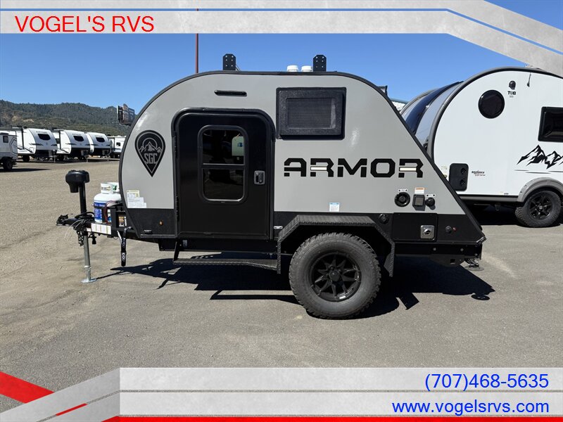 With any Armor 10LT teardrop trailer or travel trailer by Skinny Guy Campers, you will be able to enjoy your adventures for years to come thanks to their rugged and durable design. The Torsion-Flex 3,000 lb. independent suspension with electric brakes and max-clearance design will help make towing smoother than ever, plus there are over-sized, all-terrain radial tires with alloy aluminum sport wheels to help tackle tougher roads. There is also vacuum-bond fiberglass sidewall construction with Azdel and a Norco stamped and huck-bolted, heavy-gauge steel, powder-coated mainframe with an EZ-Extend hitch jack for hassle-free towing. Inside, you'll enjoy LED lighting, multiple 110V, 12V and USB ports to stay powered up, and a 12V, 3-speed roof vent to keep air flowing.